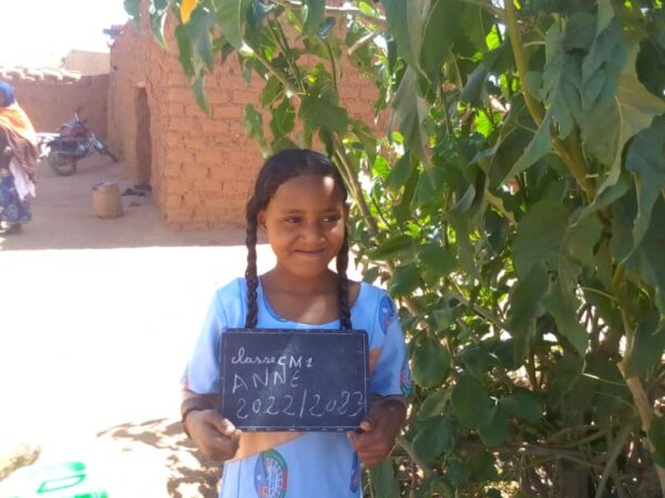 Um dem Mädchen die bestmöglichen Chancen zu geben, haben seine Eltern Nouchan und Fitina beschlossen, Fatimata beginnend mit Herbst 2019 auf die Privatschule der Mission Catholique in Tchirozerine (Nord-Niger) zu geben.